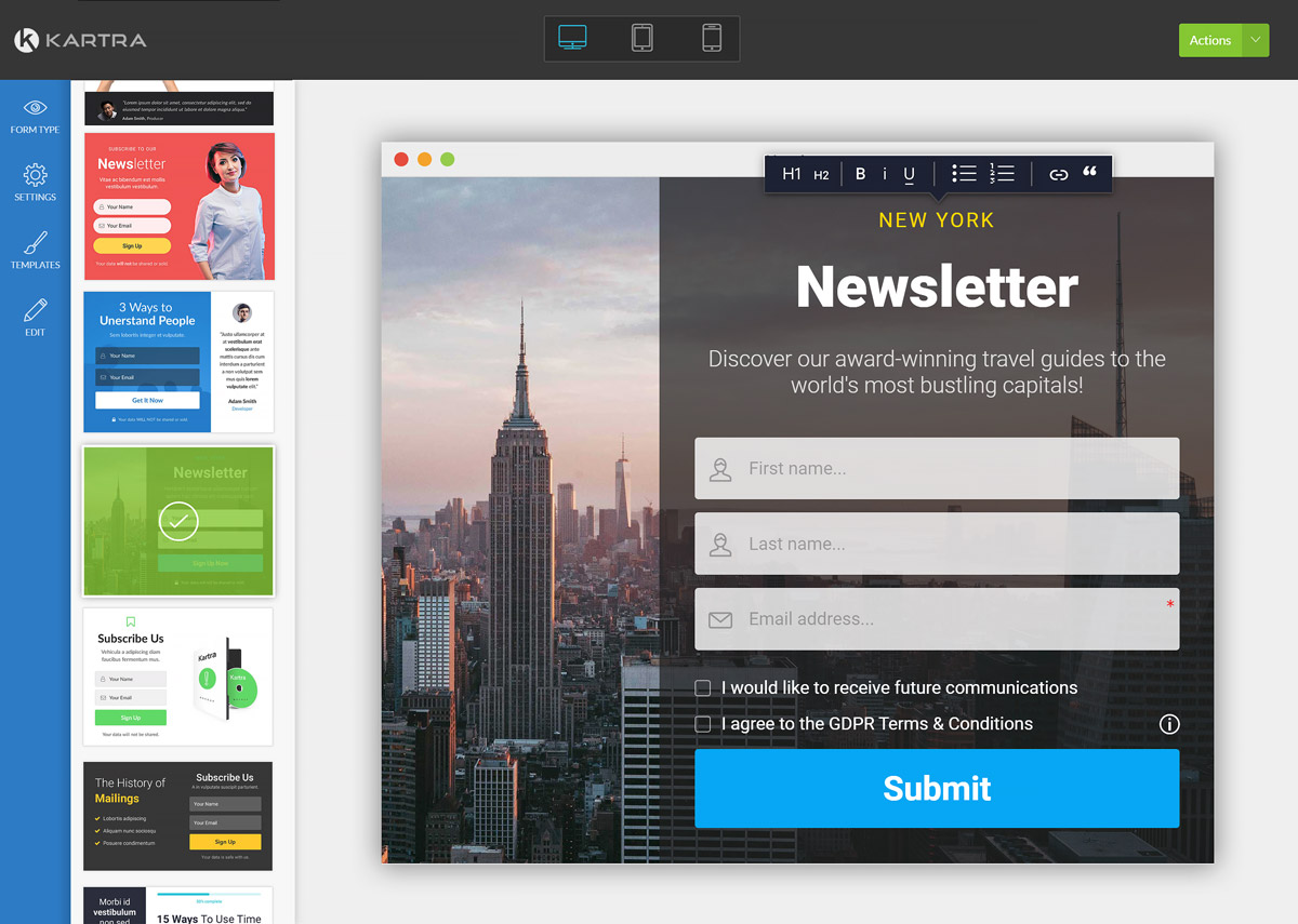 Kartra Forms will look stunning no matter the device, browser, operating system, etc.