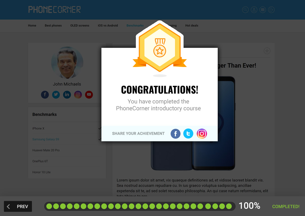 But that's not all. Kartra Memberships allows you to provide your members with progressive content and lead them to a higher tier. The system knows when a user has completed your course, so you can configure a number of automated actions. For example: display a congratulations message, or automatically unlock the next access tier, or subscribe them to an "advanced user mailing list", etc.
