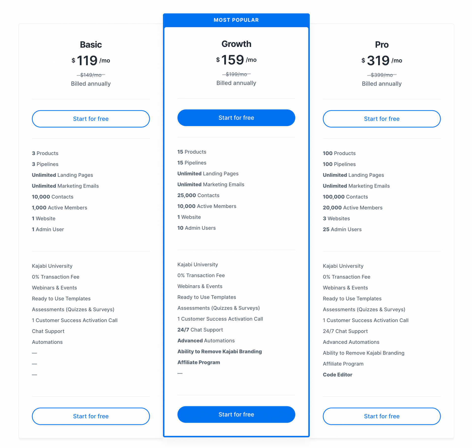 That's where the similarities end. And the list you see above is 80% of what you'll get for Kajabi's starter package.
